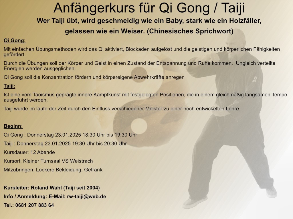 Qi Gong und Taiji sind frei von jeder Ideologie und kann von jedem Menschen erlernt und praktiziert werden.