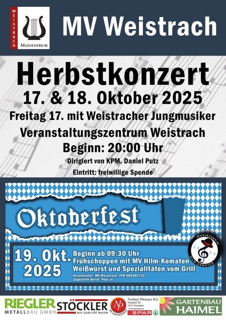 Der Musikverein Weistrach lädt recht herzlich zum diesjährigen Herbstkonzert ein.