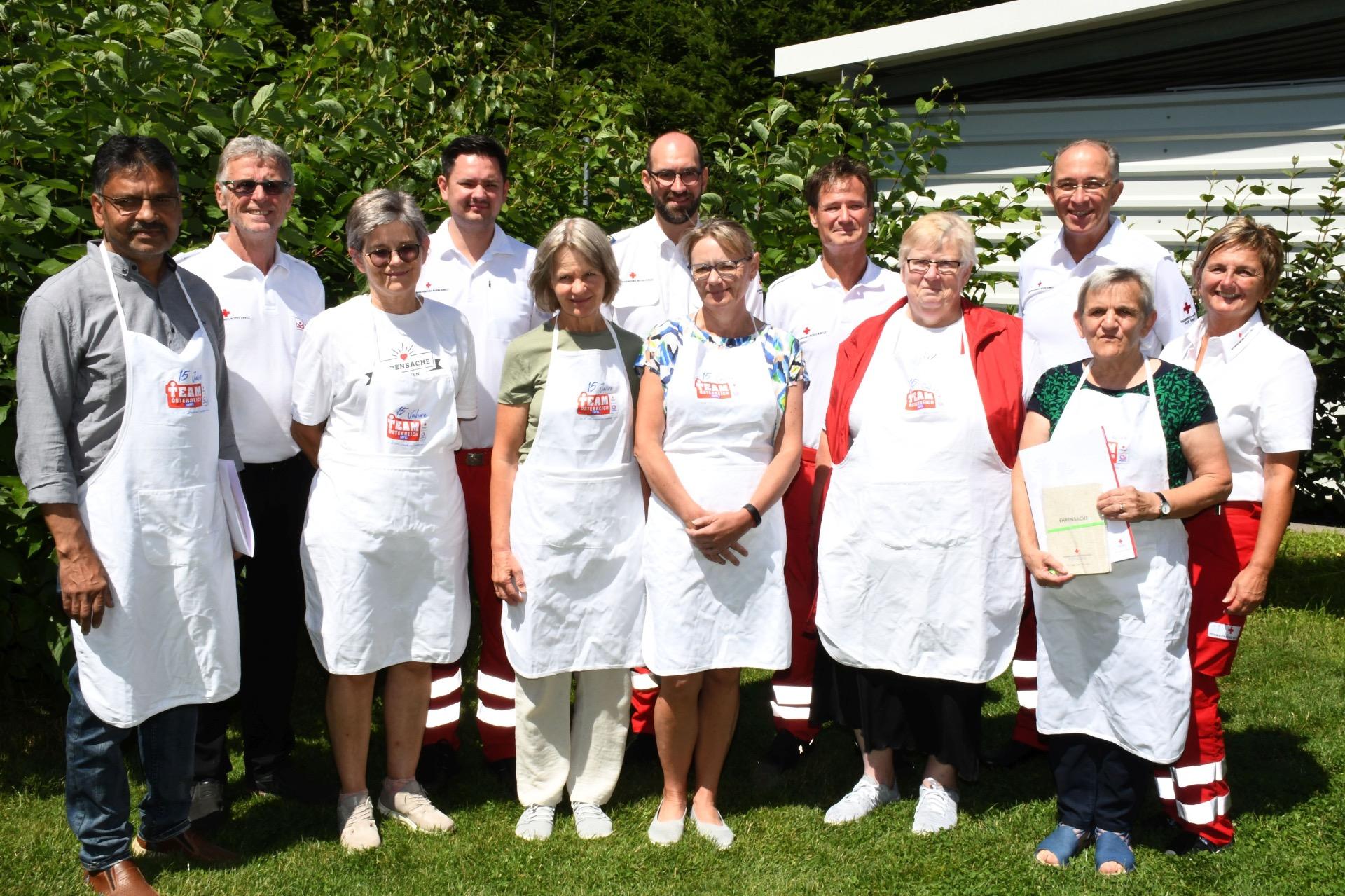 ST. PETER/AU. 20 Jahre jung und gerade erst seinen Zivildienst beendet. Patrick Rudelstorfer legte 2010 den Grundstein für eine wahre Erfolgsgeschichte in St. Peter/Au. Um einerseits der Lebensmittelverschwendung entgegenzuwirken und andererseits Menschen in der Umgebung zu unterstützen, startete er mit einem kleinen Team aus ehrenamtlichen Helfern die Team Österreich Tafel im Pfarrhof in St. Peter/Au. 2017 übernahm Josef Kaltenböck die Leitung über die, Stand heute, rund 80-köpfige Mannschaft. Alleine 2024 konnten dadurch bei 3.100 Dienststunden rund 35 Tonnen an einwandfreien Lebensmitteln vor der Mülltonne bewahrt und an Menschen, die diese dringend brauchen, verteilt werden. Seit 2019 finden die Ausgaben jeden Samstag an der neuen Rot-Kreuz-Bezirksstelle im Burgholz statt. Genau dort fand am 19. Juli auch die Jubiläumsfeier statt. Im Rahmen eines kleinen Festaktes wurden jene sieben Mitarbeiter_innen geehrt, die seit Anbeginn und bis heute für die Team Österreich Tafel im Einsatz sind.