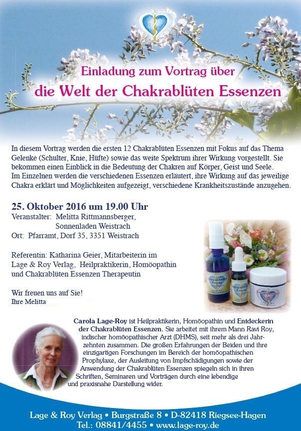 Einladung zum Vortrag über die Welt der Chakrablüten Essenzen